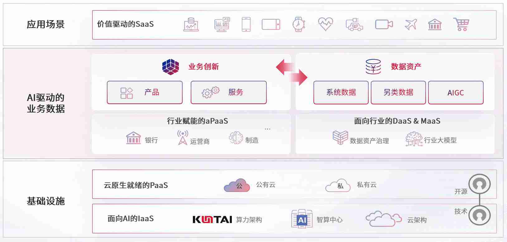 数字时代,,,,围绕企业数字化转型的关键要素,,,,AG尊龙数码开创性的提出数云融合战略和技术体系框架,,,,着力在云原生、、、、数字原生、、、AI原生和信创产业上架构产品和服务能力,,为处在不同数字化转型阶段的快消零售、、汽车、、、、金融、、医疗、、、、政企、、、、教育、、运营商等行业客户提供泛在的敏捷IT能力和融合的数据驱动能力,,构建跨界融合创新的数字业务场景和新业务模式,,,助力企业级客户建立面向未来的核心能力和竞争优势,,,全面推动社会的数字化、、、、智能化转型升级。。